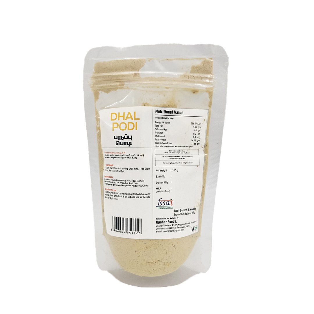 Bring authentic South Indian flavor to your meals with Paruppu Podi (Dhal Podi). This protein-rich spice mix is prepared using roasted toor dal, urad dal, red chillies, garlic, and aromatic spices. With a perfect balance of taste and nutrition, it is one of the most popular podis enjoyed across Tamil Nadu and Andhra cuisine.