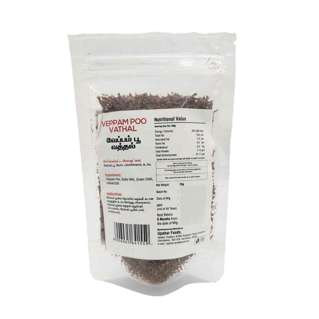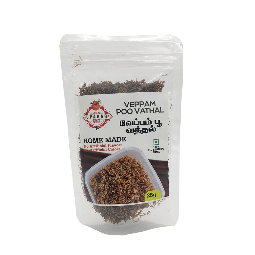 Rich in medicinal properties, Veppam Poo is known for supporting digestion, detoxifying the body, and boosting immunity. It adds an authentic touch when used in veppam poo rasam, kuzhambu, or as seasoning for rice and curries.